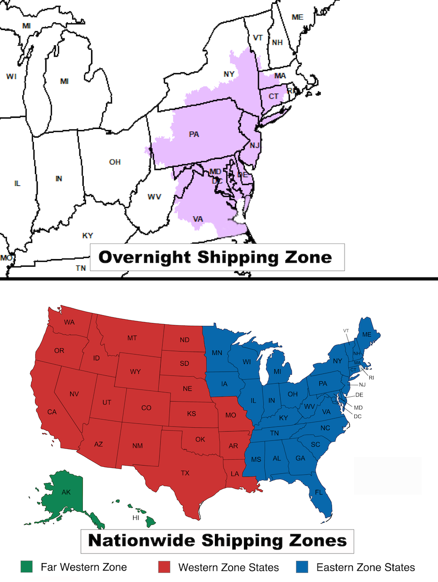- Regular delivery within our overnight zone (see map): 1-day shipping
