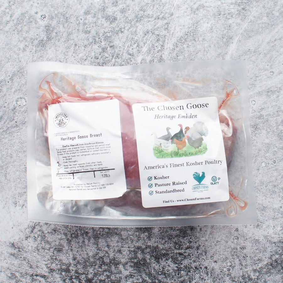 You can also try our skinless breast, flavorful and remarkably tender. Our skinless goose breast offers all the depth of goose meat with a leaner profile. Perfect for quick searing, stir-frying, or slicing thin for salads and sandwiches. A luxurious yet versatile cut that delivers pure goose flavor without the extra fat.