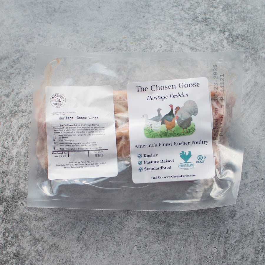 A budget-friendly way to enjoy the rich, savory flavor of heritage goose, our Heritage Goose Wings are versatile and perfect for a variety of cooking methods. Use them for making deeply flavorful stock or soup, roast them for a crispy treat, deep fry for indulgent wings, or even toss them on the BBQ for a smoky twist.