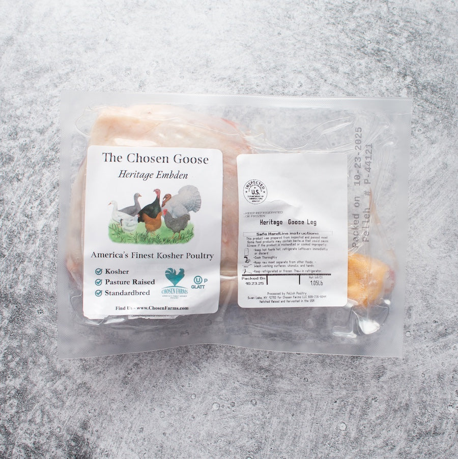 Sink your teeth into the unparalleled flavor of our Heritage Goose Legs. These hearty legs are robust and deeply flavorful, with dark, rich meat that practically melts off the bone when cooked low and slow. The natural layer of heritage goose fat keeps the meat exceptionally moist, giving every bite a silky, indulgent quality that transforms any meal into a special occasion.