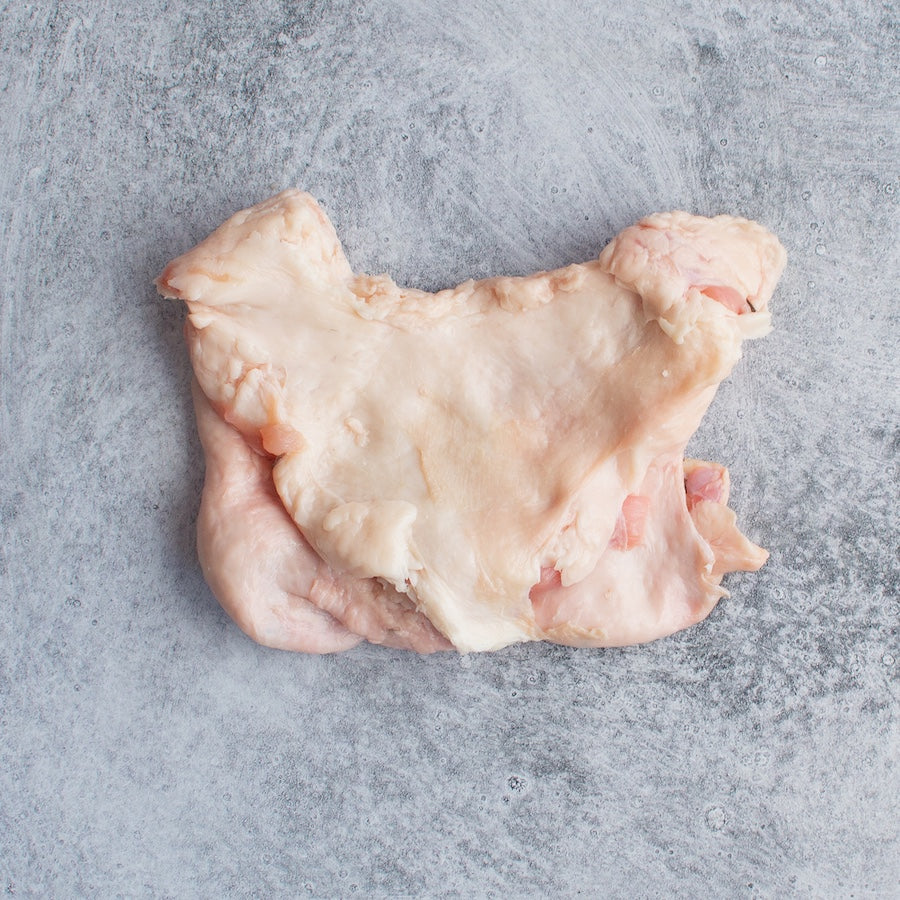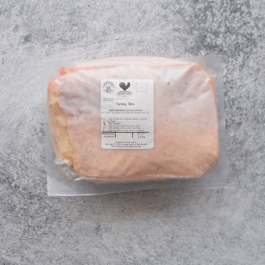 Please note that due to the naturally vibrant colored feathers of our turkeys, some pin feathers and follicles may be present on the product. If you are particularly sensitive to this, we recommend selecting our chicken skin instead.