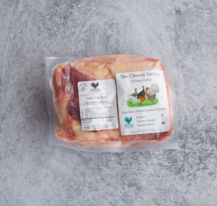 Cooking Tips: For the best texture and even cooking, tenderize the turkey thigh filets until the meat lays flat. Baste with olive oil or shmaltz, and season generously with salt and pepper. Enjoy the incredible flavor as is, or elevate it with a touch of garlic and rosemary for an added burst of aroma. Grill for 4-5 minutes on each side over medium-high heat, taking care not to overcook. For extra juiciness, opt for the skin-on version.