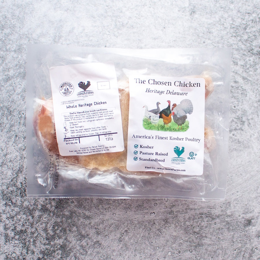 We are OU Kosher Certified. The shechita is chassidishe shechita. All meat is produced at Pelleh Poultry, the country's strictest kosher poultry plant. Learn More...